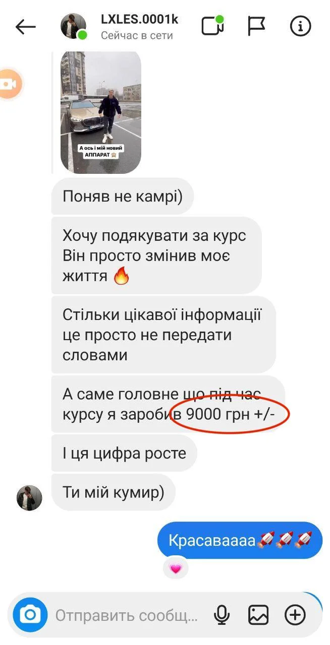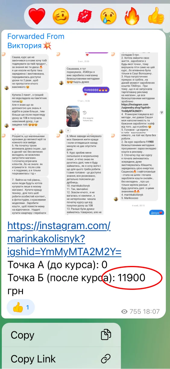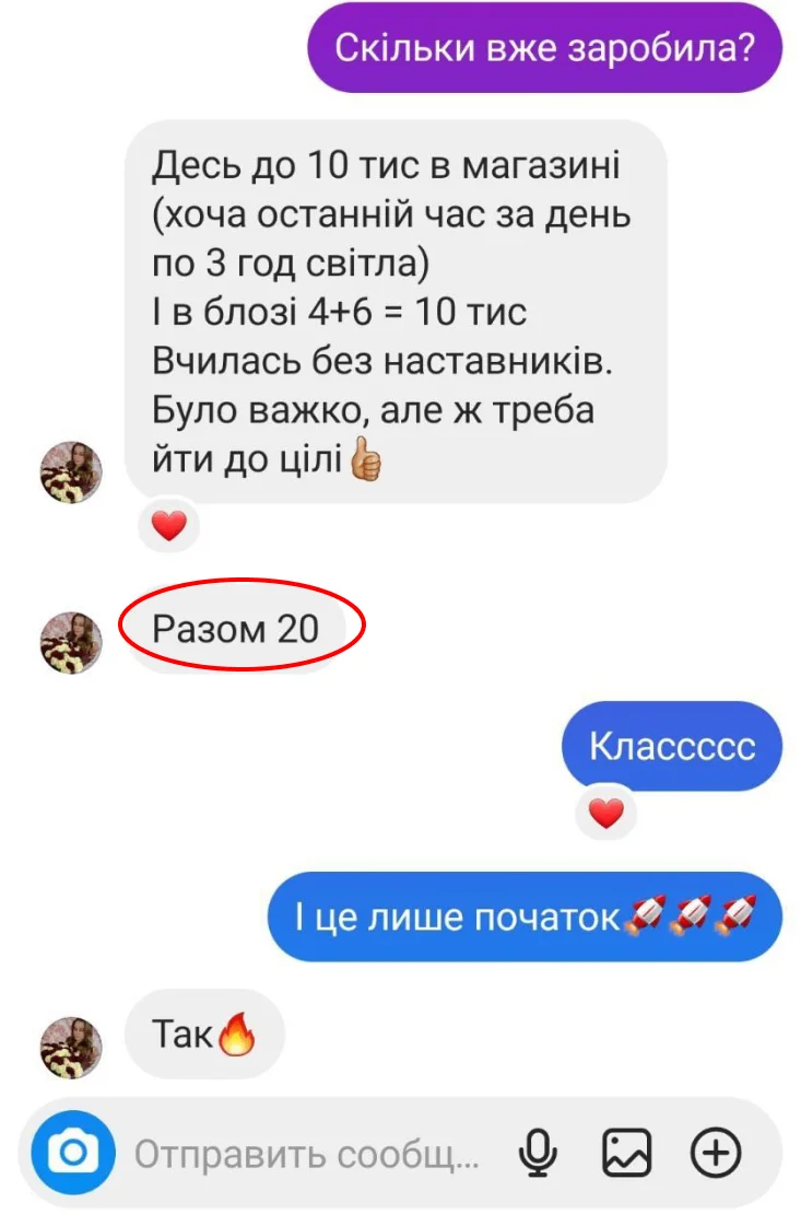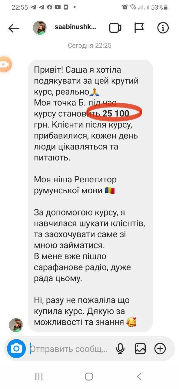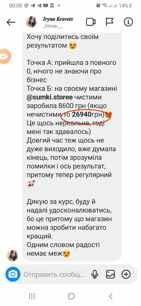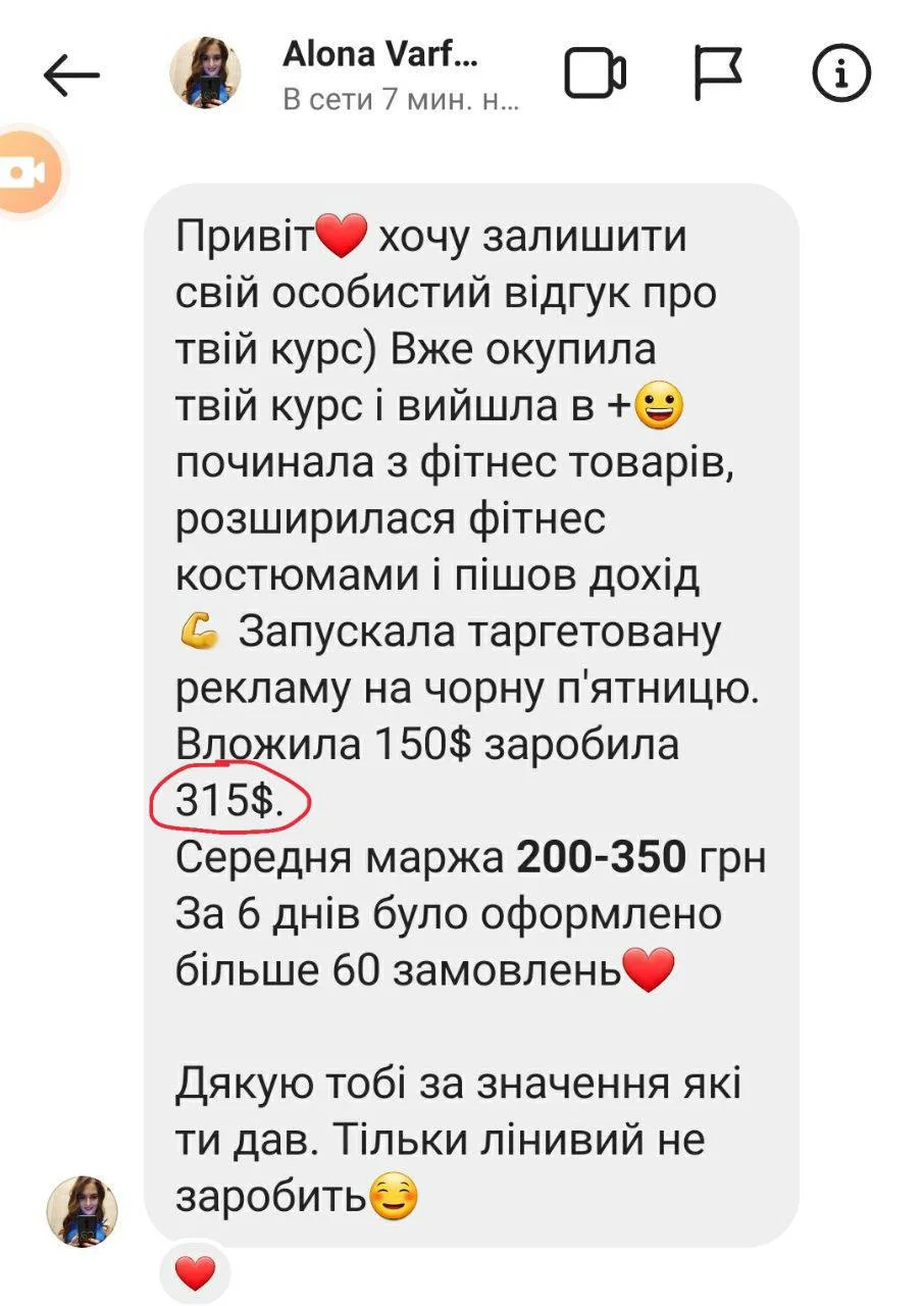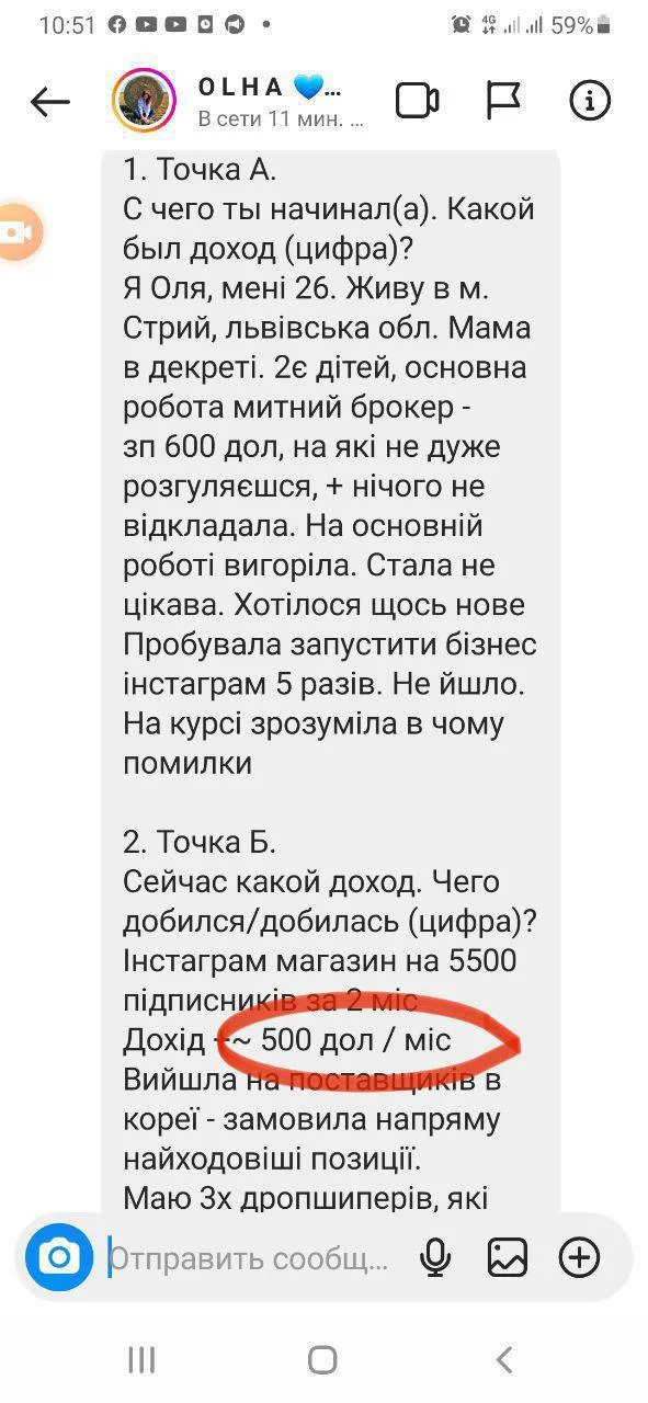 Точка Б: Запустила власний інстаграм-магазин і у перший місяць після навчання вийшла на дохід в $1000+. Обирає нову машину
